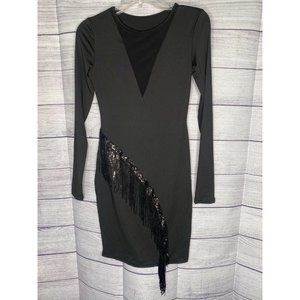NWOT Boutique "Unbranded" black dress with sequin fringe size small