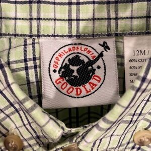 NWOT Goodlad green and blue infant plaid shirt perfect for spring holidays