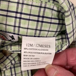 NWOT Boys Infant Green Plaid Button down shirt sleeve Shirt