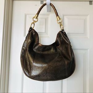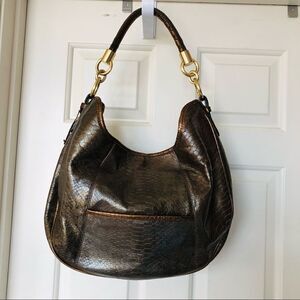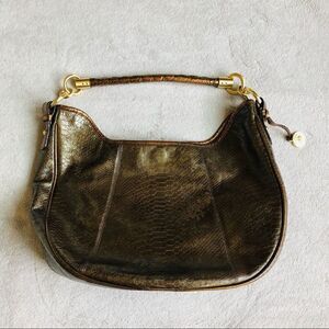 One handle for easy carry and no straps dropping off your shoulder. Gold tone hardware