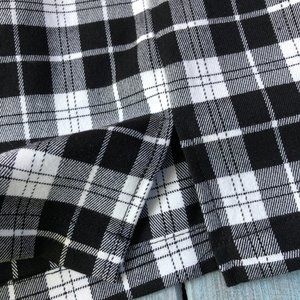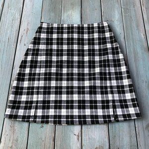 Black and white plaid print skirt with a back zipper opening and two small front slits.