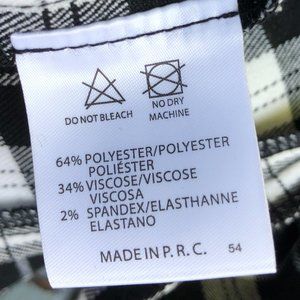 Fabrics: 64% polyester, 34% viscose, 2% spandex
