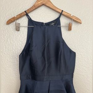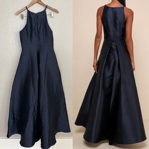 Raise a glass in the Broadway Show Navy Blue High-Low Gown! Medium-weight woven taffeta, with a high shine sheen, shapes this showstopping gown with adjustable spaghetti straps, an apron neckline, and a princess-seamed bodice. Fitted, banded waist sits atop a flowy, high-low maxi skirt with box pleats, side seam pockets, and a voluminous silhouette. Hidden back zipper/clasp.