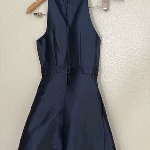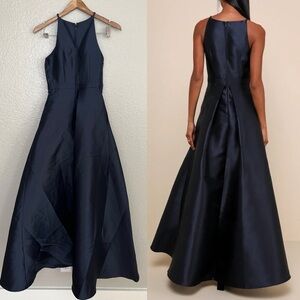 Raise a glass in the Broadway Show Navy Blue High-Low Gown! Medium-weight woven taffeta, with a high shine sheen, shapes this showstopping gown with adjustable spaghetti straps, an apron neckline, and a princess-seamed bodice. Fitted, banded waist sits atop a flowy, high-low maxi skirt with box pleats, side seam pockets, and a voluminous silhouette. Hidden back zipper/clasp.