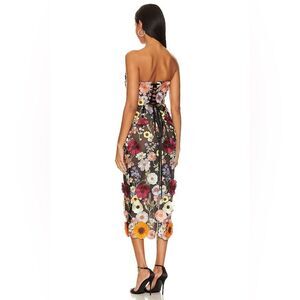 BRONX AND BANCO Bouquet Maraya Midi Dress This Bouquet Midi dress is crafted of semi-sheer fabric. Decorated with 3D floral adornments, this fitted style features a strapless bustier bodice and midi-length skirt. Brand new