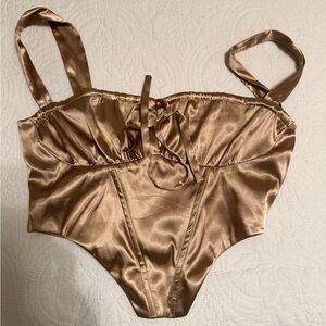 NWOT Bronze/Gold Satin Corset Front Tie Top Size M
