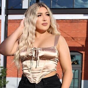 NWOT Bronze/Gold Satin Corset Front Tie Top Size M