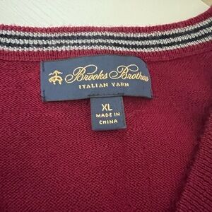 NWOT Brooks Brother Burgundy V Beck Sweater 100% Italian Merino Wool Sz XL