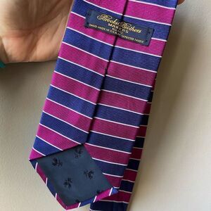 NWOT Brooks Brothers Makers Blue and Magenta Horizontal Striped Silk Tie