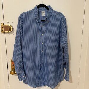 NWOT Brooks Brothers Slim Fit Non Iron All Cotton - Blue & White Stripe 16.5- 34
