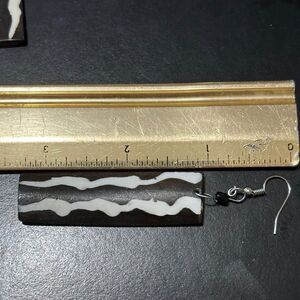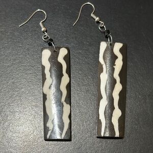 NWOT Brown & Cream Dangling Rectangular Bone Earrings