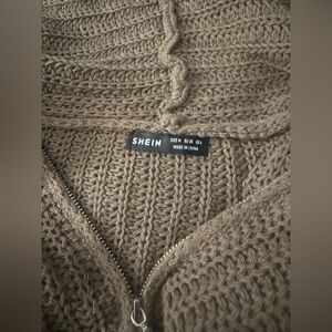 SHEIN brown knit hoodie sweater