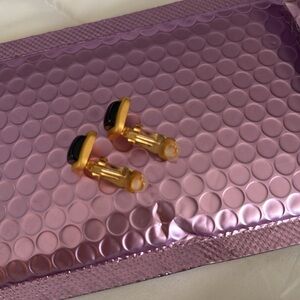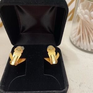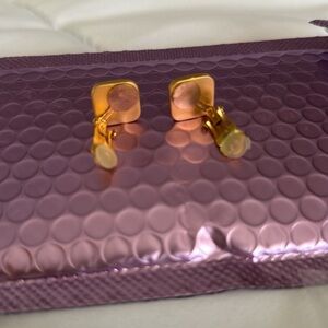 NWOT Brushed gold and blue square clip on earrings. These are new, w/o tags. Comes in a jewelry bag (no earring box).