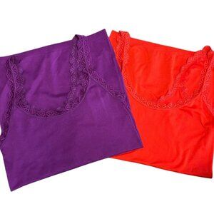 NWOT Bundle of 2 Scoop Neck Tank Tops Size S Lace Detail Purple Orange NY & Co.