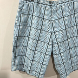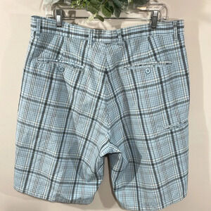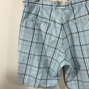 NWOT Burnside Flat Front Blue Plaid Shorts 36