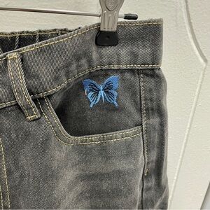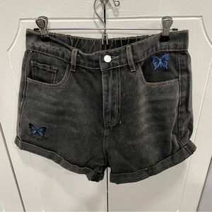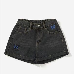 NWOT Butterfly Embroidery Washed Black Denim Shorts