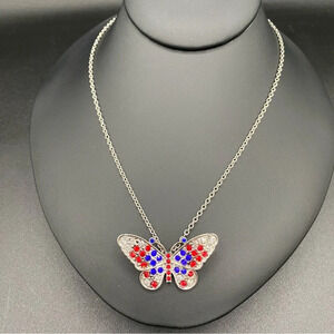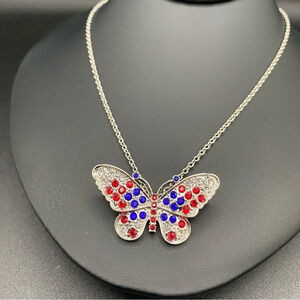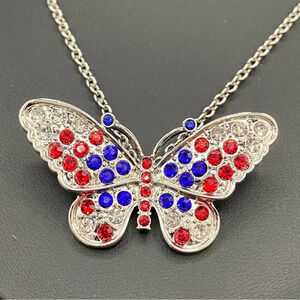NWOT Butterfly Pendant Necklace win Blue and Red Patriotic