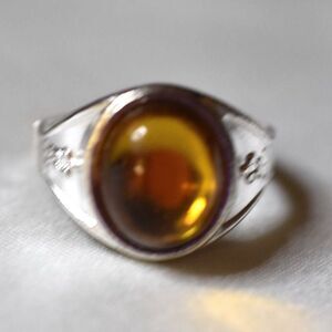 NWOT Butterscotch Orange Oval Stone Etched Silver Tone Size 9.5 Unisex Ring