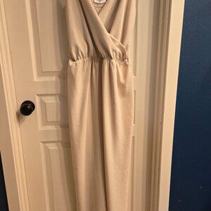 NWOT C Brand beige jumpsuit. Bought from Closet Candy Boutique. Size 1X. No flaws. Straight legs, adjustable straps, smocked back, which allows more flexibility in sizing. Never worn and unfortunately, now it doesn't fit and needs a new home.