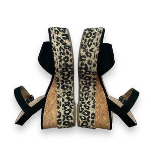 NWOT C Comfort Leopard Espadrille Cork Wedge Sandals