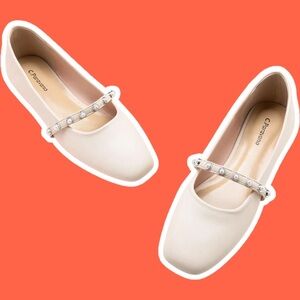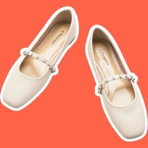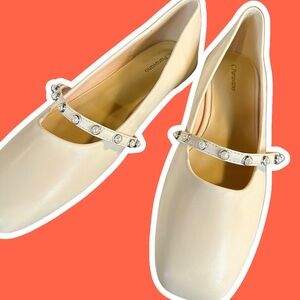 NWOT C. Paravano ‘Clara’ Pearl Embellished Strap Mary Jane Flats in Cream 10.5