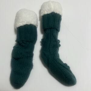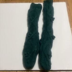 NWOT CABIN POM POM TALL CABLE THERMAL GREEN SOCKS