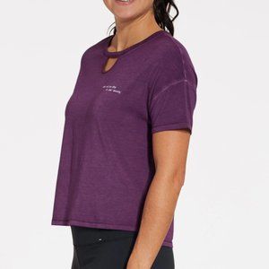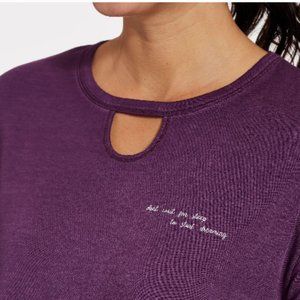 New Without Tags CALIA by Carrie Underwood Women's "Don't Wait For Sleep to Start Dreaming" Boxy T-Shirt, Medium. COLOR: BLACKBERRY CORDIAL (nice dark plum shade). Loose fit t-shirt. Classic crew neckline with cutout detail. Lightweight fabrication is ultra-soft and easy to move in. Custom-dyed construction makes each garment unique. CALIA™ logo back graphic. Approx. 21.5" pit to pit, 22.5'' length. Fabric : 51% micro modal / 45% pima cotton / 4% spandex.