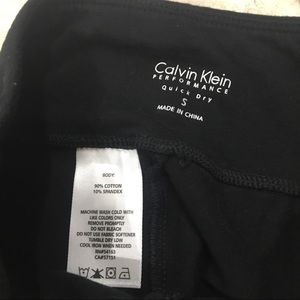 NWOT CALVIN KLEIN performance Quick Dry black cropped leggings | slits on sides of bottom hems | says Calvin Klein performance on side of left leg near bottom hem as shown in 3rd pic | size S | length across waistband is 13” | inseam is 24.5” | mid rise is 8”