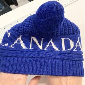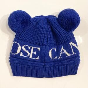 NWOT CANADA GOOSE Hat Beanie Kids O/S ITALY Wool Double/2-PomPom Blue Logo Lined