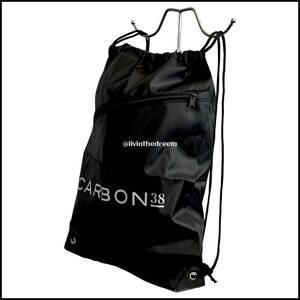 Black nylon CARBON 38 Drawstring Gym Bag Backpack. Perfect to carry along for when you might need it.