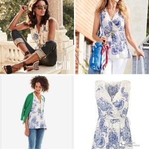 NWOT CAbi veranda blue paisley top