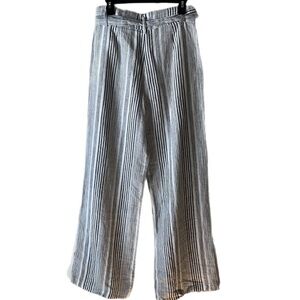 NWOT C&C California 100% Linen Pants Gray White Striped Belted Beachy Coastal 4