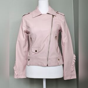 C&C California Girls Ruffled Vegan Leather Moto Jacket sz 12 BLUSH PINK