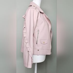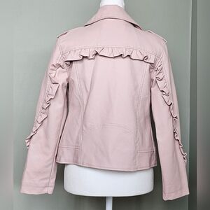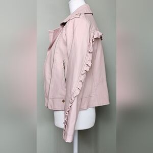 NWOT C&C California Girls Ruffled Vegan Leather Moto Jacket BLUSH PINK sz 12