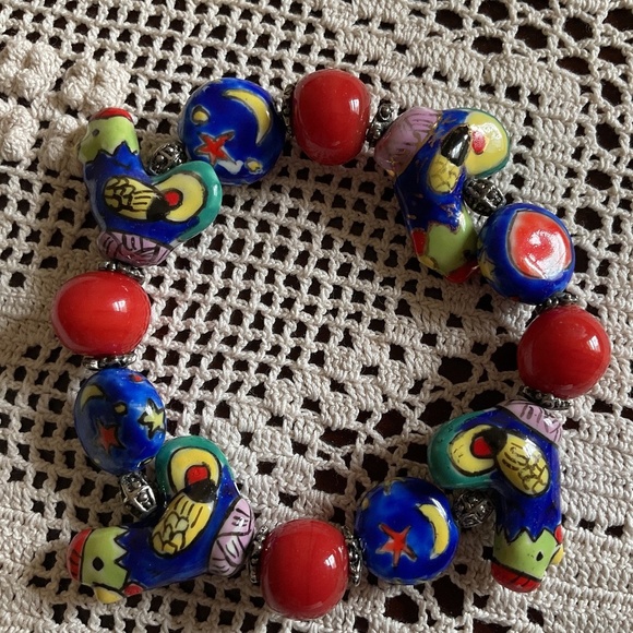NWOT CERAMIC HAND MADE MULTICOLOR BEADS STRECH BRACELET
