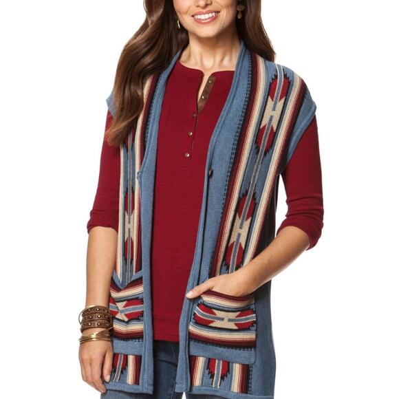 NWOT CHAPS Ralph Lauren Cardigan Sweater Vest 2X Aztec Open Blue Sleeveless 2Pkt