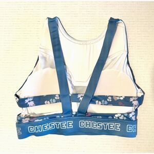NWOT CHESTEE Blue Floral Full Coverage Lifting Crossfit Sports Bra Womens 4