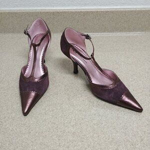NWOT CL By Laundry Panne 9.5M Leather Wine T Heel Pump Pointed Toe Buckle Luxury