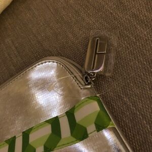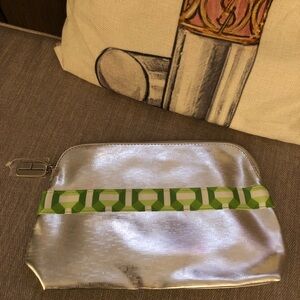 New neVer used CLiNiQUE Large Make-up/Essentials bag in Silver/Green with front pocket! Big C zipper-pull! Super cute & perfect addition to throw in a tote or bag to keep yourself organized!