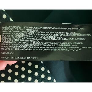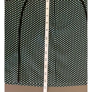 NWOT C/MEO Collective a-line cross front polka dot mini skirt, size 8, wrap over button waistline in the front and some stitching detail, zip with button closure, dark green color with white polka dots, fully lined and stretchy.