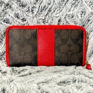 NWOT - COACH ACCORDION ZIP WALLET IN SIG COATED CANVAS W/LEATHER STRIPE (F5463)