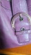 Color is vibrant purple. Material is a smooth leather with pleated details.