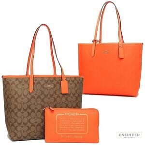 NWOT COACH Reversible City Tote & Makeup Pouch Colors Khaki & Metallic Tangerine