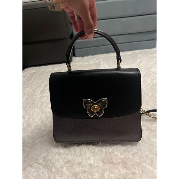 NWOT COACH Black Top Handle Metallic Butterfly Charm Crossbody Bag