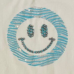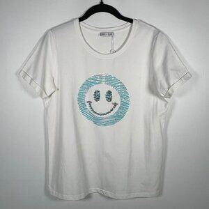 NWOT COCO Y CLUB Rhinestone Smile Crew Neck Short Sleeve T-Shirt Size M