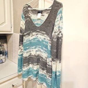 Pretty Aqua, Gray & White Heavy Cbunky Knit Sweater