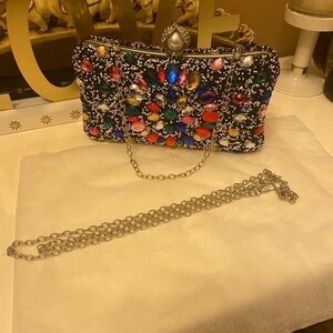 NWOT CRYSTAL AND SPARKLE EVENING BAG WITH 2 CHAINS
