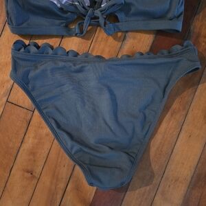 NWOT Rib Scalloped V-Neck Top & Low Rise Hipster Bikini Set womens size medium in a beautiful dark green color.