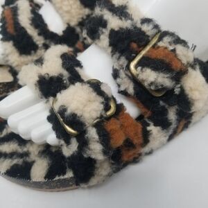 NWOT CUTE FURRY LEOPARD PRINT SANDALS WITH BUCKLES. MULTIPLE SIZES.