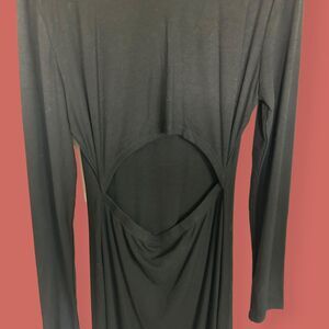 🖤 NWOT CUTOUT BLACK MIDI DRESS LONG SLEEVES FLATTERING XL